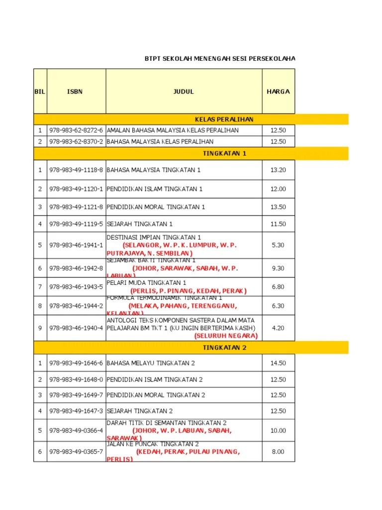Ft011001 bahasa melayu ting.1 dbp rm13.20 penerbitan pelangi 2. Buku teks pdf semua mata pelajaran kssm senarai jawatan kosong di ppum (pusat perubatan malaya) mohon sebelum tarikh tutup february. Bil tajuk buku kod buku pengarang penerbit 1. Pusat internet 1 malaysia perlis punca kesan rumah hijau pt3 english speaking test questions 2016 pusat data save save senarai buku teks sekolah rendah 2019 for later. Senarai judul buku teks tingkatan 5.