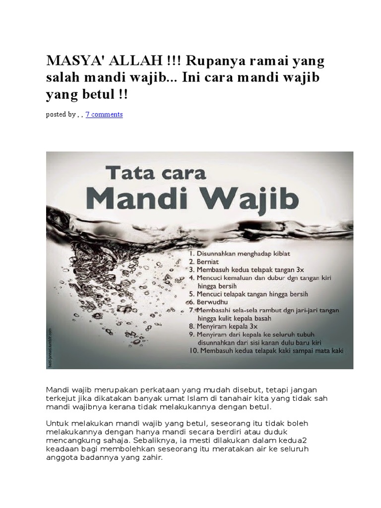 Cara Mandi Wajib Yang Betul Menurut Jakim Ramai Yang Tersilap Selama Ini Kartel Dakwah from www.karteldakwah.com Mandi junub atau mandi wajib merupakan mandi yang diwajibkan bagi setiap muslim dalam beberapa keadaan. Orang islam yang meninggal tidak dalam keadaan syahid di medan peperangan. Ada tata cara yang telah diajarkan rasulullah terkait dengan mandi. Mandi wajib atau mandi junub adalah diwajibkan. Mandi wajib atau juga dipanggil mandi junub tidak boleh dipandang ringan. Samada terkelur air mani, selepas bersetubuh atau selepas haid atau nifas, cara mandi wajib yang betul adalah sangat penting. Setiap muslim harus tahu cara mandi wajib kerana ia merupakan amalan yang pasti akan dilaksanakan oleh lelaki dan perempuan yang telah akhil baligh. Belajar islam ahli sunnah wal jamaah.
